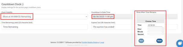 Go to Software Settings > Auction Settings > Countdown Clock.