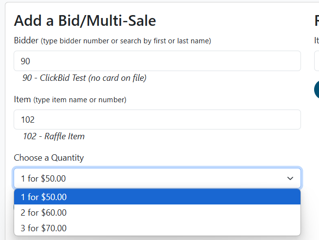 Volunteers can log in and sell tickets using Add a Bid / Multi-Sale