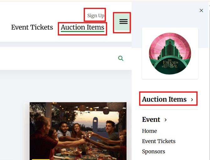 Click on any item’s Place Bid button