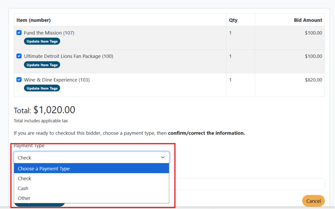 💡 Tip: For test events, we recommend selecting cash or check to avoid unnecessary credit card fees or refund scenarios.