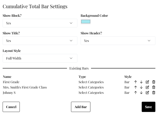 Click Update Bar to save the bar.