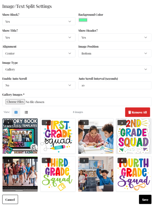 Step 2: Configure Image/Text Split Settings