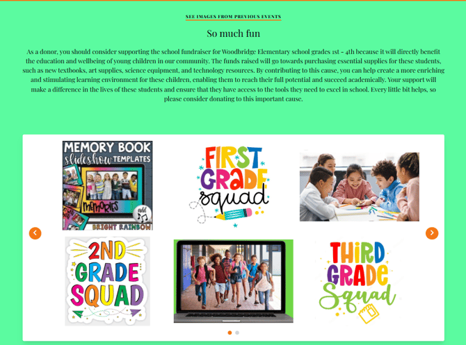 You can also include a Photo Gallery content block on your landing page to highlight your cause and encourage giving.
