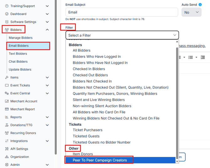 Go to Bidders > Email Bidders.