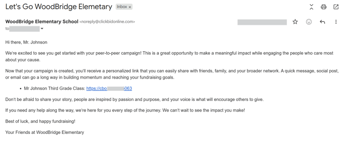 You can customize the email that is sent to supporters after they create a new peer-to-peer campaign.