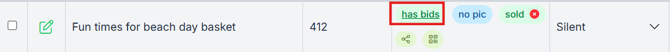 Find the item and click has bids.