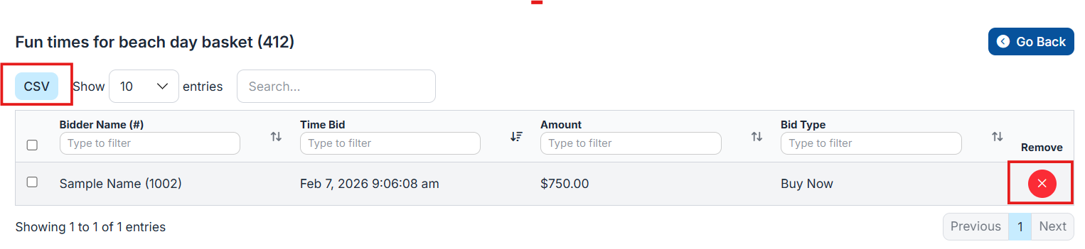 4. Click the red X to remove all existing bids.