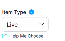 5. Change the Item Type to Live.