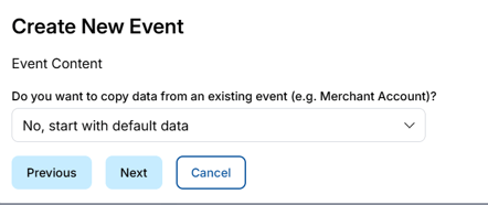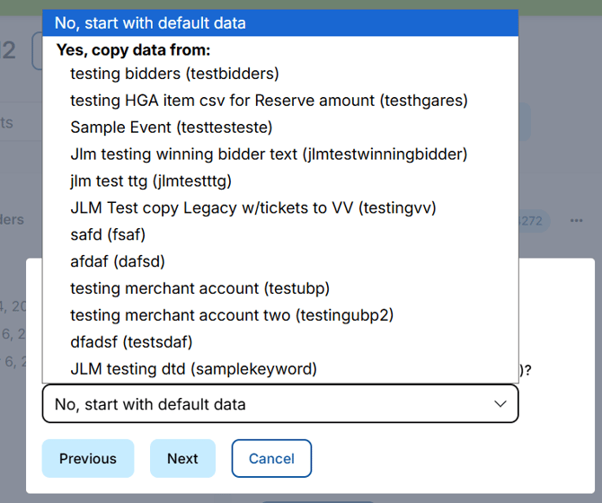 Use the arrow to populate previous events to allow you to choose the event you want to copy from.