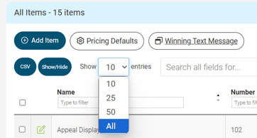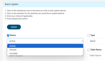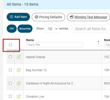 Locate the Status column and make sure all item statuses are set to Active. If not, change their status: