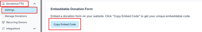 In your ClickBid admin, navigate to Donations/Text-to-Give > Settings.